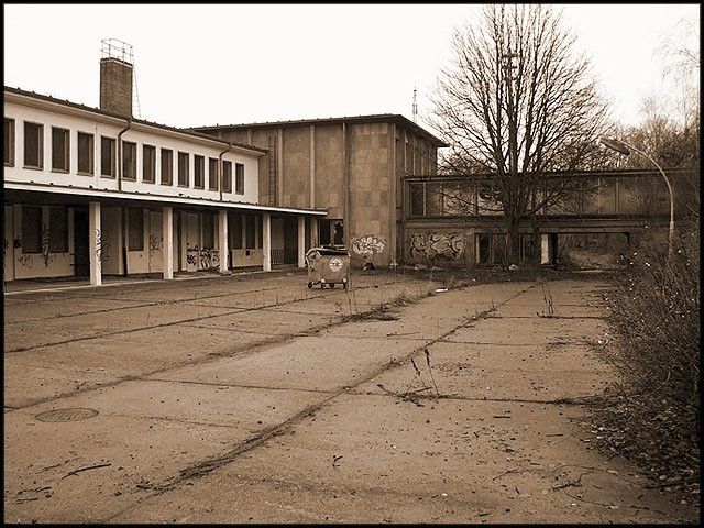 *) Der Hinterhof zwischen Empfangsgebäude und Bahnsteigen.