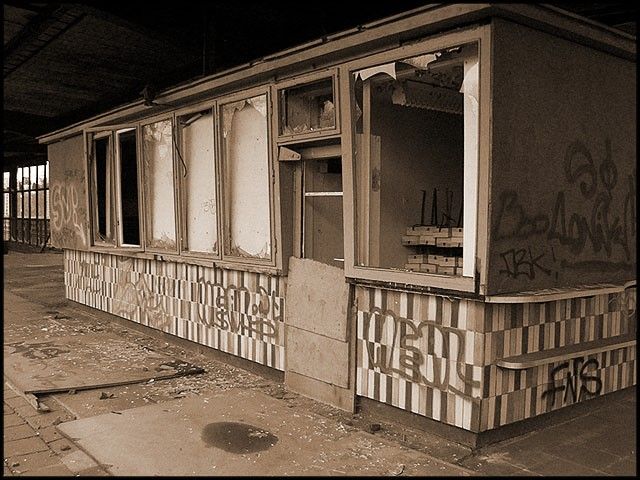 eng.: One of the platform pavillons had been broken open by some vandals.