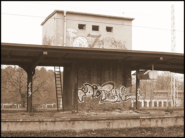 *) Der Aufzug auf dem Nachbarbahnsteig.