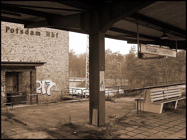 *) Alter und neuer Name in einem Bild. Normaerweise wird das Stationsschild bei Stilllegung entfernt.