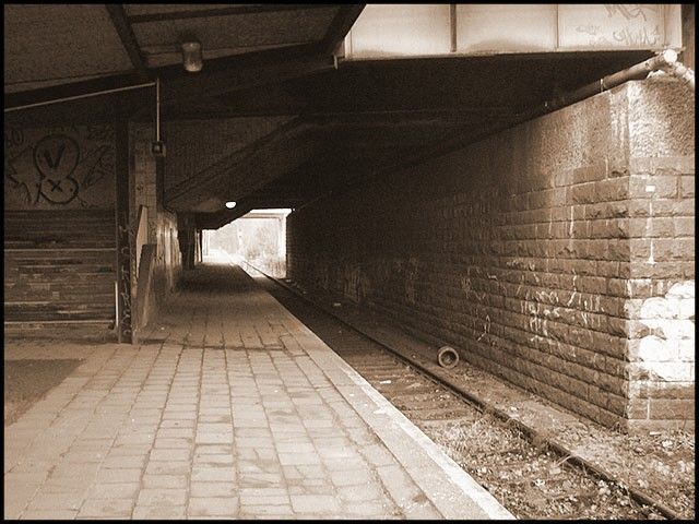 eng.: Track 8 under the upper platforms. Because of the stairways up, the track could not be electrified.